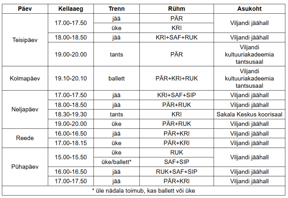 Treeningud algavad septembrist ja kestavad mai lõpuni